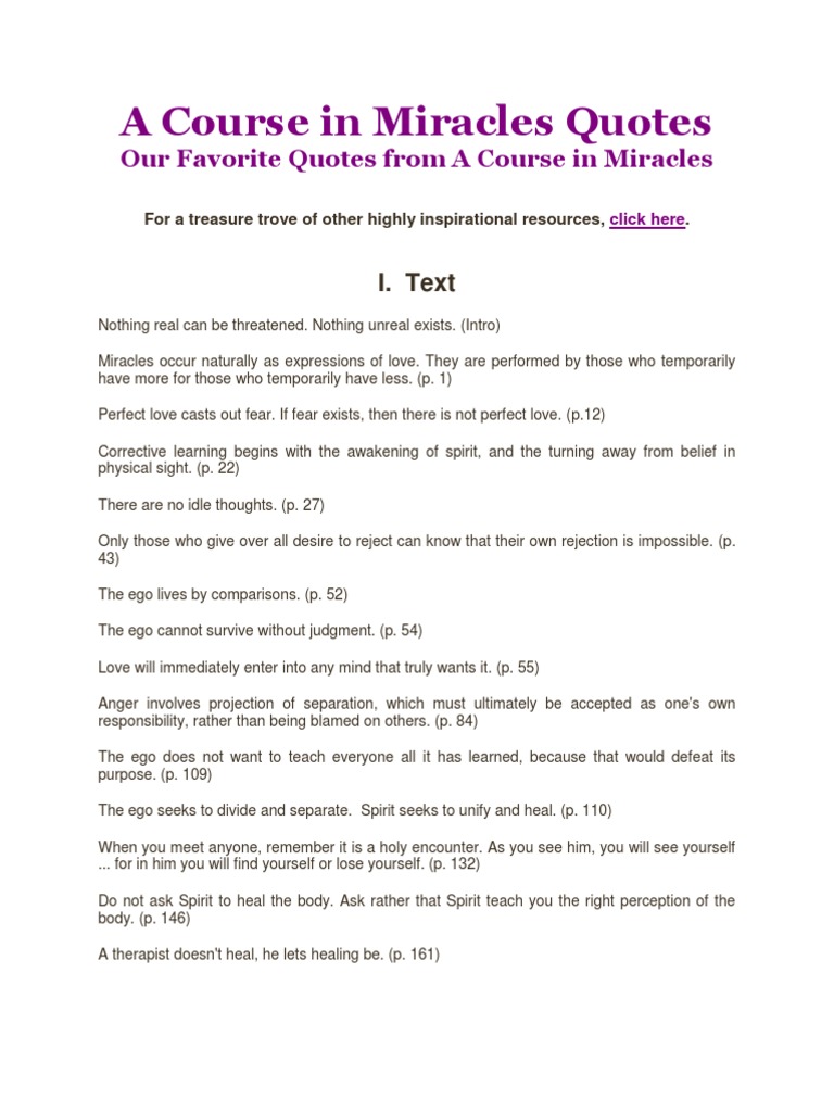 A course in miracles quotes pdf often shortened to ACIM is a self-study spiritual thought system that offers a path of self-remembering to lead people beyond their egos to encounter the living God within themselves. You are a miracle capable of creating in. There is no order of difficulty in miracles.
